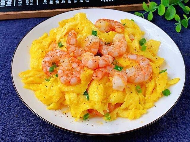 5.用小火拌炒蝦仁雞蛋。出鍋裝盤撒蔥花。上桌------開動!!!
